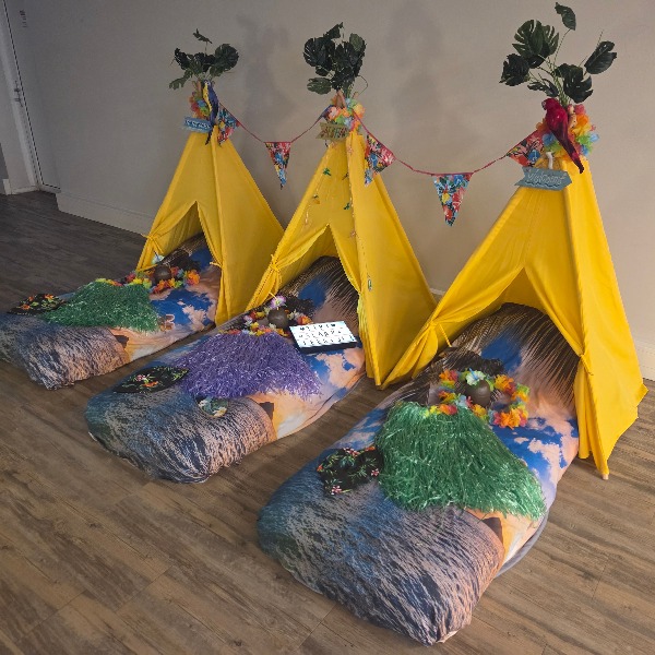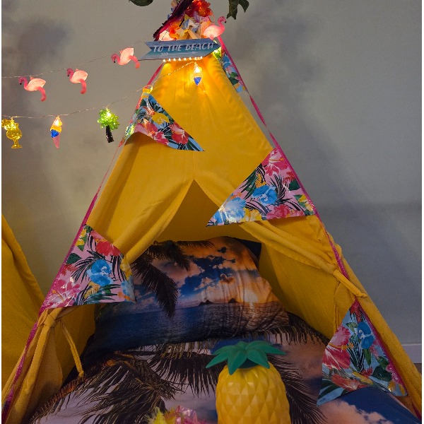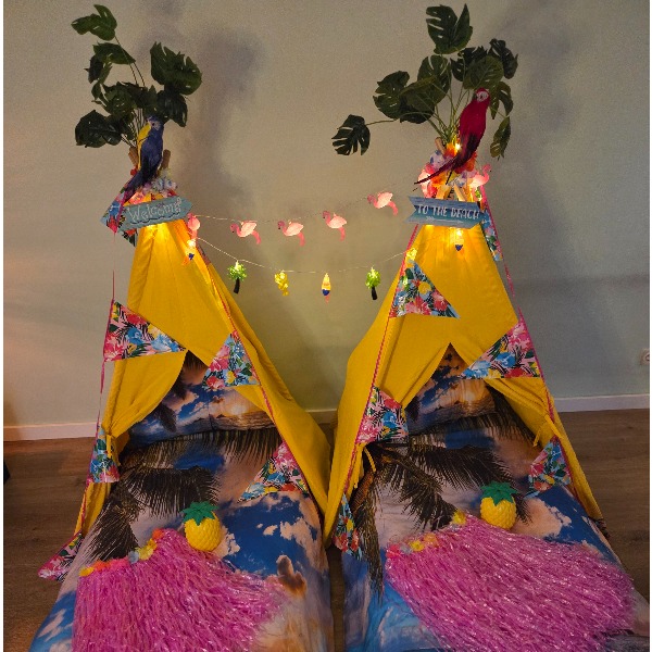 Breng de zon in huis met het Tropisch / Hawai Tipi Slaapfeestje van Tipi Droomfeestjes!