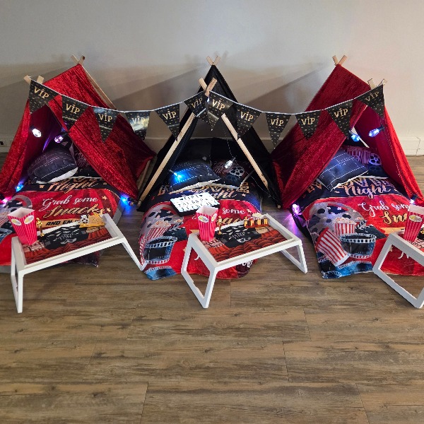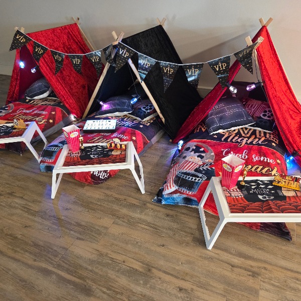 Zet de popcorn klaar en kruip in je eigen tentje tijdens het Movie / Filmavond Tipi Slaapfeestje van Tipi Droomfeestjes!