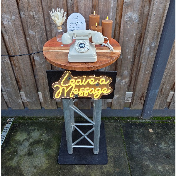 Gasten nemen de stijlvolle retro telefoon op en horen een persoonlijk welkomstbericht van bijvoorbeeld het bruidspaar of de jarige. Na de piep spreken ze hun eigen boodschap in — een wens, een anekdote of gewoon een vrolijke groet. Zodra de hoorn weer wordt teruggelegd, wordt het bericht automatisch opgeslagen. Later kun je alle opnames terugluisteren… en gegarandeerd nog een keer glimlachen (of een traantje laten).