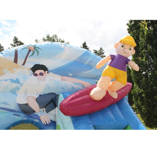 Kinderen kunnen naar hartenlust springen, spelen en hun fantasie gebruiken alsof ze op een surfplank de golven trotseren. Dit vrolijke luchtkussen brengt direct energie, kleur en een zomerse sfeer op elk evenement.